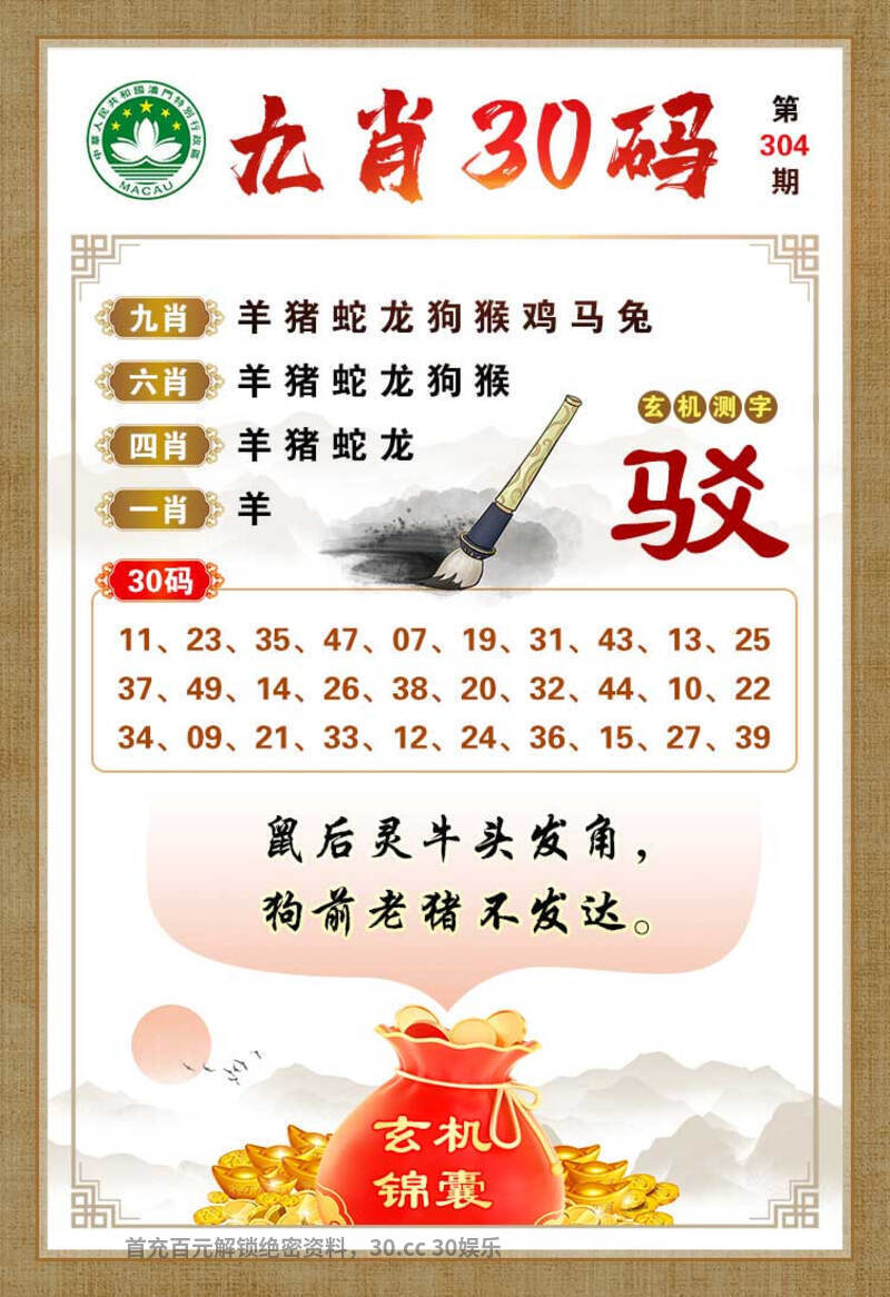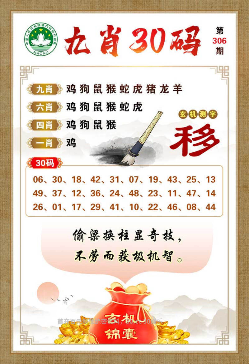 | 306期 | 马 | 蓝波双 | 3头单 | 牛17 |